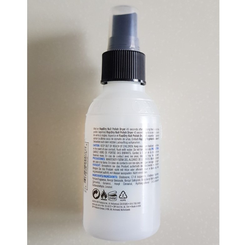 Spray pentru Uscarea Rapida a Lacului de Unghii - OPI RapiDry Spray Nail Polish Dryer 110ml. Shop Online for OPI - Rapidry Spray 60ml and more at Myer. AL 702 AL 703 AL 704 AL 706 AL 707 AL 709 15 Product Use. RapiDry Spray Nail Polish Dryer by OPI gives nail lacquer a smooth smudge-proof finish in minutes. Home Вести how to use opi rapid dry spray. HEXAMTHYLDISILOXANE MIXTURE 13 Synonyms. OPI was one of the first brands of fast-drying nail polish sprays to become mainstream and they initially helped to pioneer the concept. I never have a problem with streaks or nicks unless you put too much nail polish. This has a very strong smell but so do all the other nail drying products.